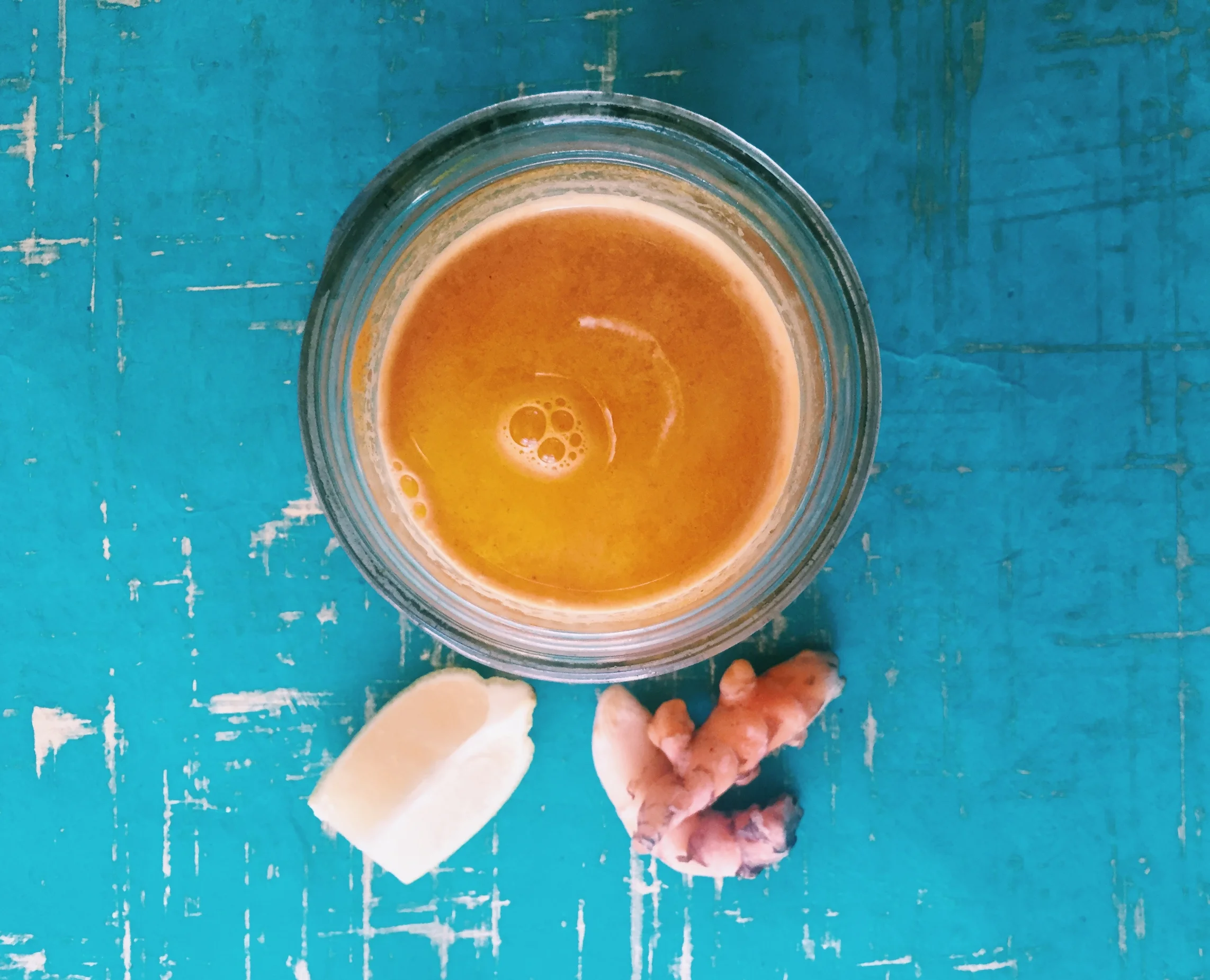 - 1/2 teaspoon of turmeric powder (or a 2 inch chunk of fresh turmeric root and blend ingredients together)