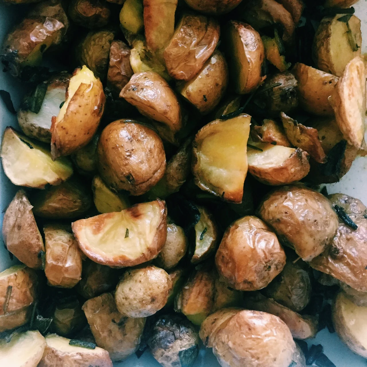 So my point is, don't skip the white potatoes, eat them with the skins, in moderation, and enjoy their wonderful taste. This is a great way to enjoy them in a simple dish replete with delicious herbs. In this recipe I suggest using fresh sage (because it smells like heaven) but I've honestly made this same dish with other herbs (parsley, dill, rosemary) and even dried herbs if I'm all out of fresh. So get creative and get cooking!