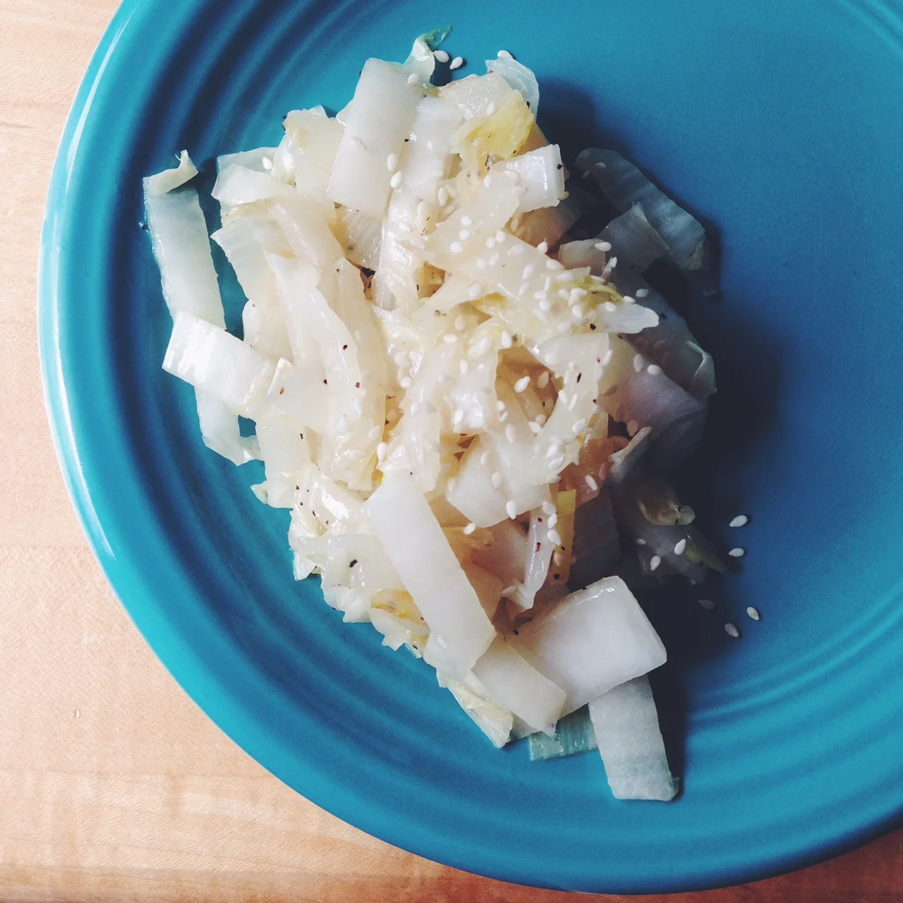 - 4-5 cups thinly chopped cabbage. Napa, green, and purple all work well